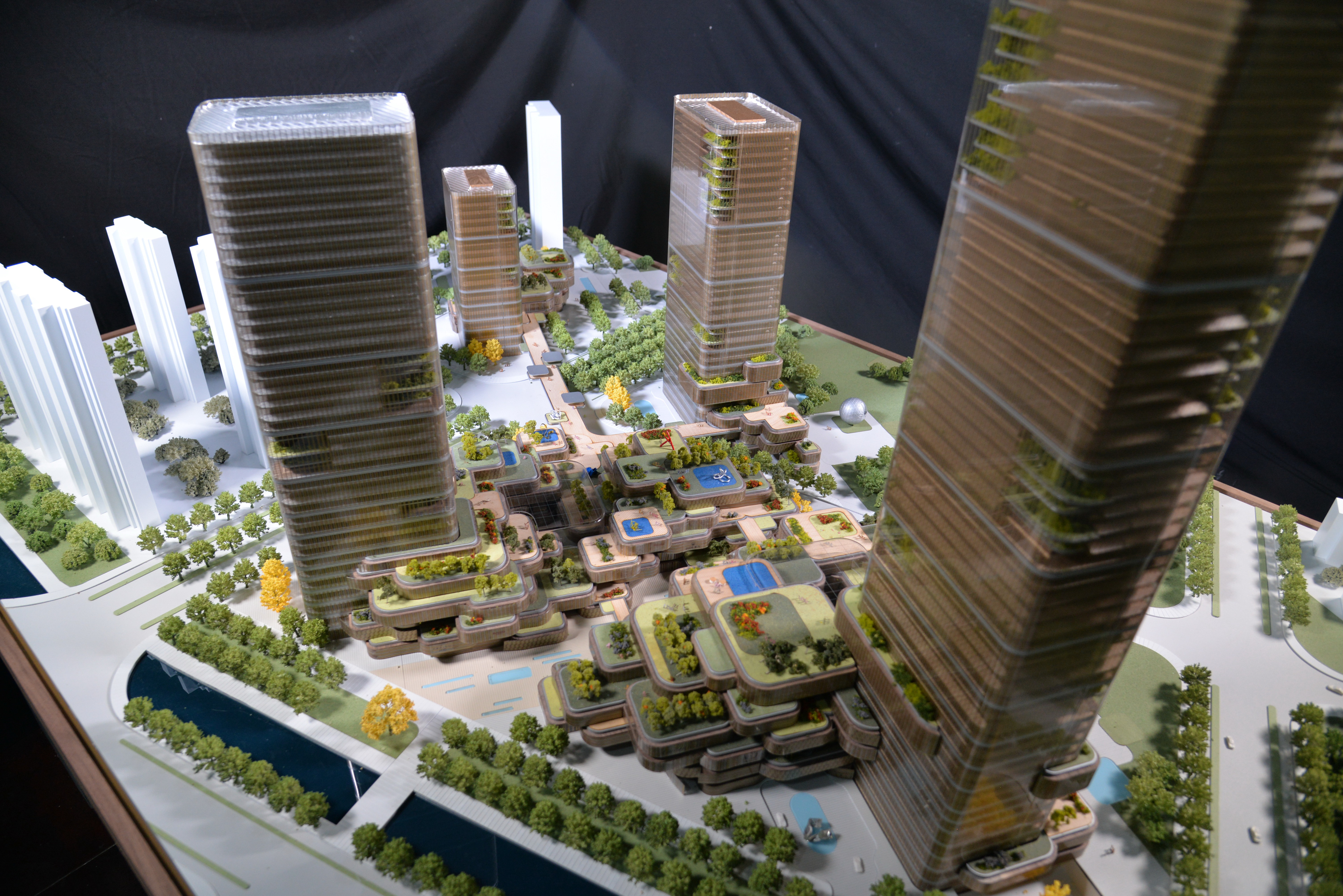 In return, elements of the park are intelligently incorporated into the design of the towers and podiums. Ultimately, the park is redefined with no clear boundary and is instead integrated as a signature component of the project’s overall architectural design.